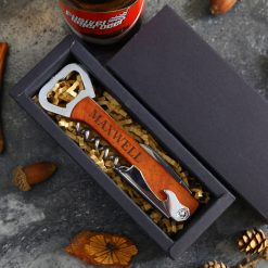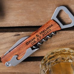 Personalized Groomsmen Gifts, Customized Red Wine Corkscrew Opener, Engraved Beer Bottle Opener With Wood Handle, Men’s Gift