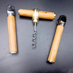 Pocket travel corkscrew with oak whiskey barrel handle