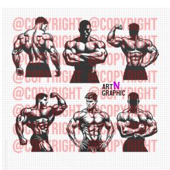 Bodybuilding 6 Muscular Man Pose Design Bundle .SVG and 4k .PNG