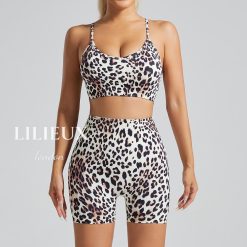 LILIEUX – Women’s Leopard Print Workout Set – 2 Piece Seamless Activewear Set with Sports Bra and High-Waisted Shorts