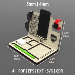 Desk Organizer Laser Cut Svg, Ai, Pdf, Eps, Dxf and CDR Files, Dock Station Files, Phone Holder Cut File, Vector Files For Laser Cutting