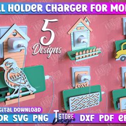 Wall Holder Charger for Mobile Laser Cut bundle, 3d Lasercut organizer, personalized wall phone holder, Phone Stand, Home Decor, CNC Files