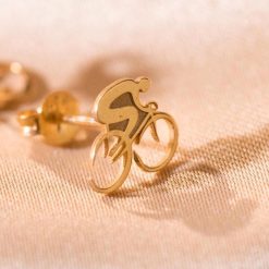 14K Solid Gold Bike Studs Earrings For Women, Bicycle Jewelry, Cyclist Gift, Biker Earrings, Sports Jewelry, Cycling Rider, Gift For Her